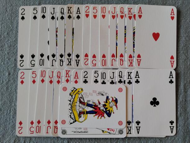 This game is played with thirty cards from a standard deck of cards. Both player is dealt 15 cards, hence they exactly know the cards in the hand of the other player, this is the novelty in this otherwise simple trick-taking game. Then the dealer determines the target parity, tricks are played, and bonus points are awarded for winning the required parity...