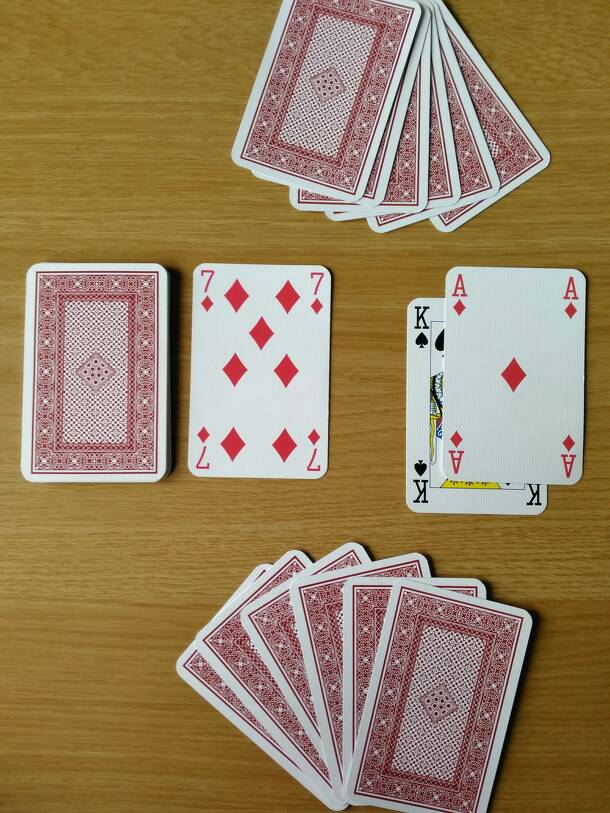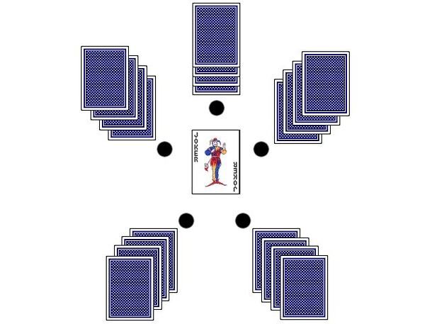 Pentacles is a card game for three to five players that uses a traditional playing card deck with jokers and five glass beads or other tokens. Play is divided into two phases. In the first phase, players play cards to their own rows, then in the second phase the winner or winners place their rows to one of the five files surrounding a joker that make up...