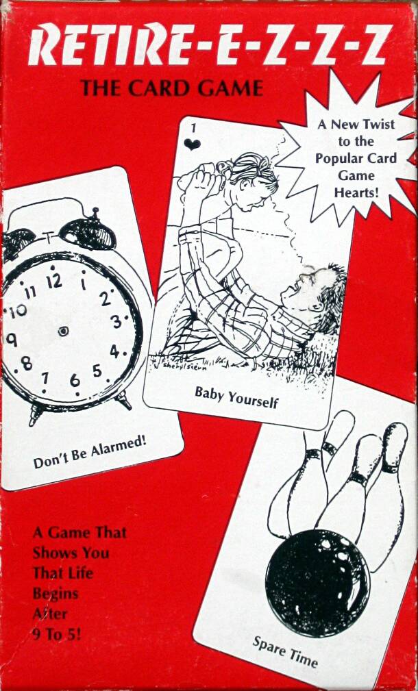 "A New Twist to the Popular Card Game Hearts!" boasts the cover. The game is somewhat of a Hearts with a retirement theme, but there are some rule ambiguities that make it unclear. There are 40 cards, 10 each in 4 suits. The black & white artwork on each card depicts various advantages to retirement (more time, relaxation, etc.) The lead player lays down a...