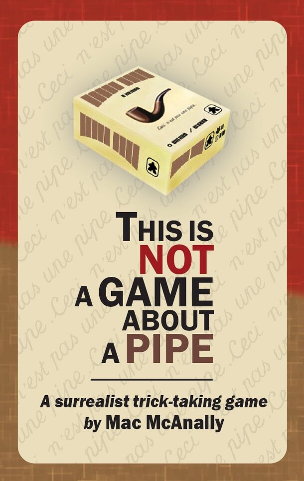 This is Not a Game About a Pipe is a surrealist trick-taking game lovingly themed on René Magritte's painting, The Treachery of Images (a.k.a. "This is not a pipe"). Using the 4 meta-suits of Pipes, Cards, Tricks, and Winning, win tricks by playing high-value pairs of cards to declare what things are ("This is a card") and what they're not ("This is not a...