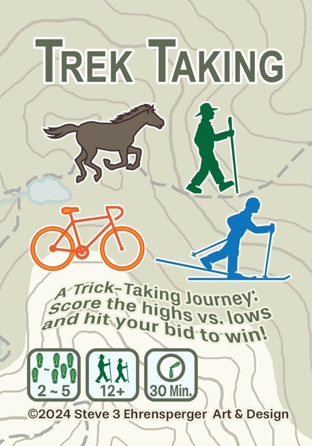 Take a trick-taking journey: Earn the most points collecting tricks over the course of 4 hands. Bid well to score easily. If you miss your bid by one trick, you may still add Trek points from one of your tricks. Trek points are the highest number of the lead suit, subtracting the lowest number of the same suit. Pay attention: The suits are asymmetric! The...