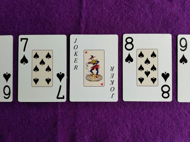 This game uses a standard deck of cards with two jokers. It is designed specifically for 6 players, although variants allow other number of players as well. Each player is dealt 9 cards, then tricks are played. During a trick a player may pass or play, in that case he has to follow suit or play a joker. The game ends when everyone passes in a turn. Then...