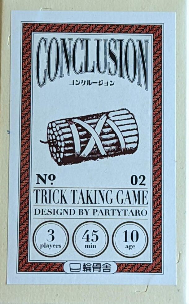 Conclusion is a reimagining of David Parlett's Collusion for exactly three players. In Conclusion, a trick-taking game, players will try to win the same number of tricks as exactly 1 other player. While the game only has three human players, there is a set up face up cards which will come into play once someone has won three tricks; that player will choose...