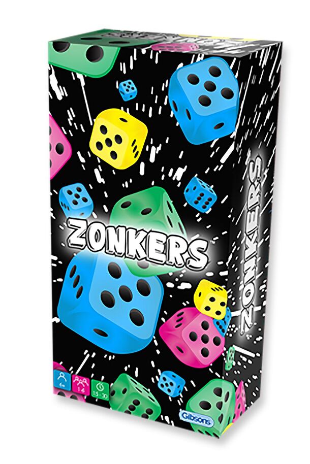 Zonkers is the fast and frantic dice game. Players are given 5 dice of the same colour and 6 cards are laid out in front of them. The head-to-head style play starts with players frantically rolling their dice and matching the number with the correct dice graphic on the cards. When the cards are filled with dice, or when a player places their last die, the...