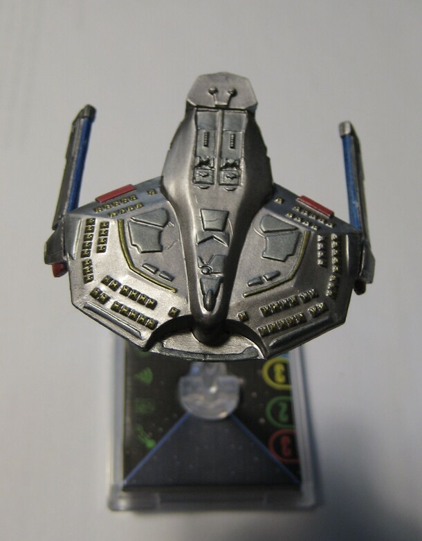 The Calindra is a a Xindi-Aquatic cruiser. This class of Xindi starship is one of the largest and though they are well armed, they are also slower than the other Xindi ships. The Xindi-Aquatics are water-breathing creatures, but all of their ships are equipped with a room that can support oxygen-breathing creatures. Star Trek - Attack Wing: Calindra...