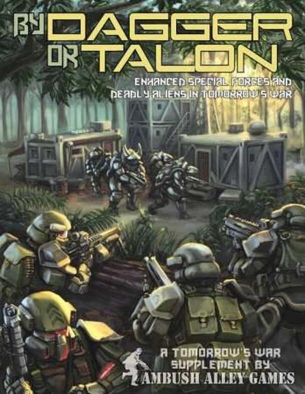 By Dagger or Talon is the first Tomorrow's War Companion book. Weighing in at over 100 pages, it is full to bursting with new rules, new Attributes, new scenarios, and new historical information for the Tomorrowverse. The book focuses on alien races and "Enhanced Special Operations Forces" (SpecOps units that make heavy use of everything from cybernetics...