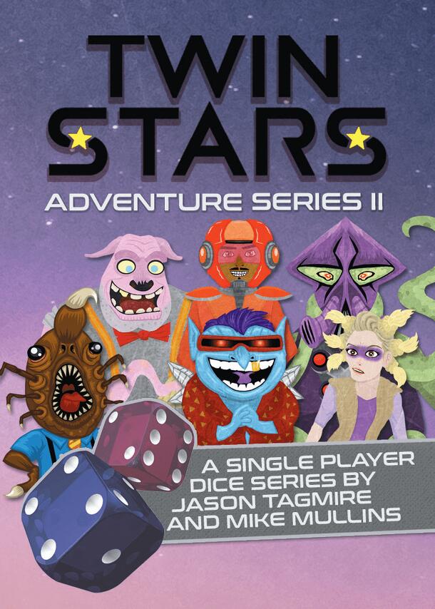 Two cosmic adventurers are in a tricky scenario and must work together. By rolling and manipulating dice for special abilities and combos, you can be the one that guides them to victory. The Twin Stars solo system was created by Jason Tagmire and Mike Mullins. A single session uses just 3 cards and players provide their own dice and coins/tokens. Scenarios...