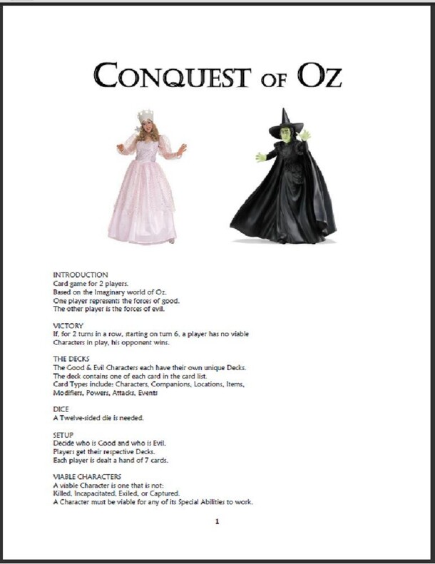 Conquest of Oz is a free game by Warp Spawn Games and is the first in Lloyd's Oz Trilogy series. Card game for 2 players. Based on the Imaginary world of Oz. One player represents the forces of good. The other player is the forces of evil. The Good & Evil Characters each have their own unique Decks. The deck contains one of each card in the card list. Card...