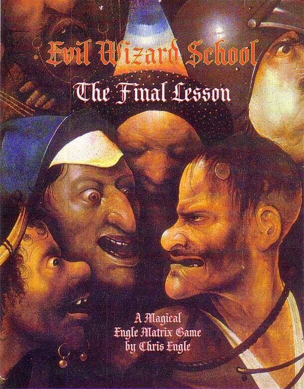 EVIL WIZARD SCHOOL The old wizard is near death. Before he dies he will teach his final lesson, the lesson that shows his deepest magic. Whoever receives this lesson will be the next master. The player’s represent the students and faculty of the school. They will scheme and back stab to be the one who gets that lesson. Everyone wants it. This allows you to...