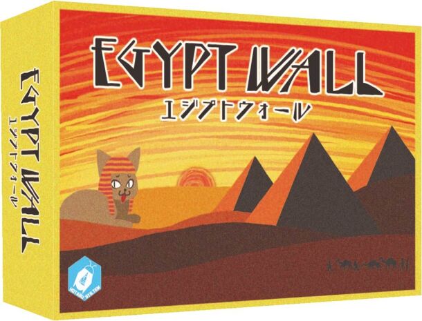エジプトウォール (Egypt Wall) is a game from Japan. Players are constructing Egyptian wall murals. Players can choose cards to add to their panel, or to improve the way their panel scores. Balancing the choices is a challenge. The game has a set of score cards laid out in a column, and panel cards depicting various Egyptian characters laid alongside each score...