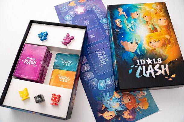 Idols Clash is a strategic card game that combines building and deduction elements with the pleasure of collecting fanart illustrations inspired by the K-Pop imaginary. The game is designed for 2-4 players for a duration of 30 minutes and is suitable for an audience over 14 as it tackles the severe and extremely important issues of mental health, burn out...