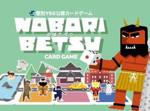 In Noboribetsu, a.k.a. のぼりべつ, each player wants to build a fine city, but you never know what you're going to get — and in the end your plans might just get shot to hell anyway. Each player starts with an onsen (hot springs) card, and a deck of twelve locations, twelve characters, and four Hell cards is shuffled. On a turn, the active player rolls the die....