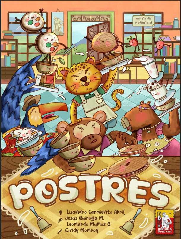 In Postres, players take the role of pastry chefs racing to deliver their desserts to various sales points across the city before their competitors. On a turn, a player may play as many cards as they wish, placing desserts at up to two sales points, and then draw cards to refill their hand. Action cards bring tension and surprises: shutting down a sales...