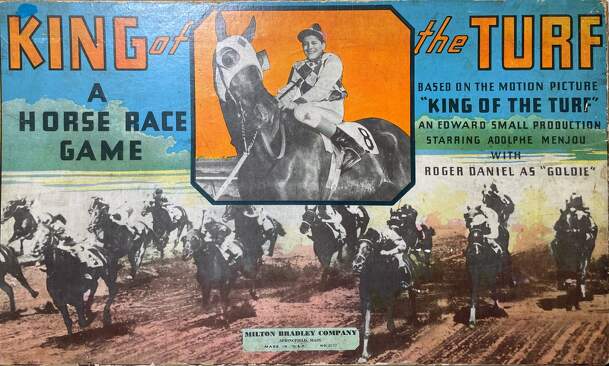 This is a horse racing game, supposedly based on (and obviously promoting) the 1939 United Artists film of the same name. Six horses run the race no matter how many players are involved, and three dice are thrown on each turn, with each horse of a different color assigned a number. Horses will therefore move 0-3 spaces per turn. The first horse to win the...
