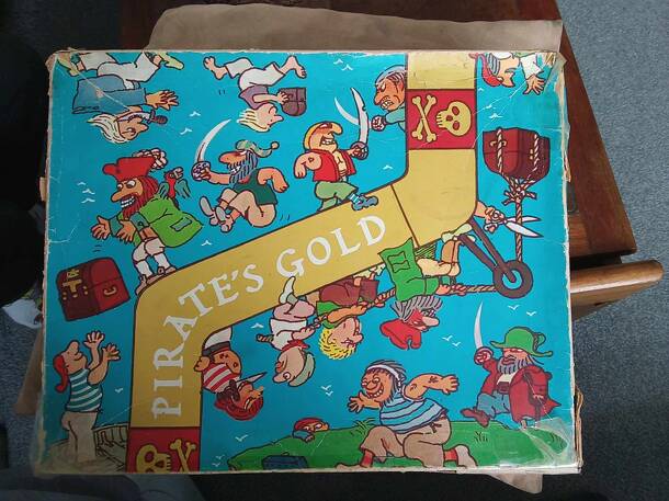 Subtitled "A Treasure Hunt for Buried Loot," this game is - surprisingly - a variation on Parcheesi. Players follow a zig-zag path to get their four pirates to the Treasure Chest at the center of the board first. This game is present in the 1928 "All-Fair" catalog, but clearly predates it by at least one year. It was no longer listed in the catalog by...