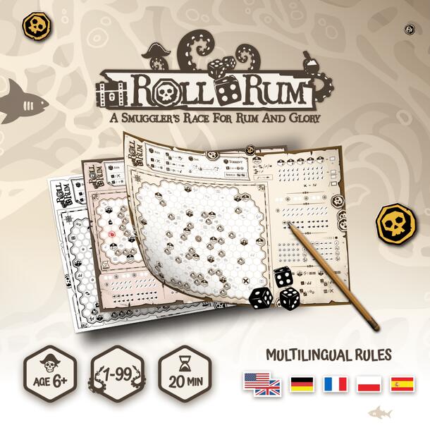 Roll 4 Rum is a strategic dice-based adventure game where players sail across a hex-based map, aiming to visit at least five harbors before reaching the final destination. Dice rolls determine fate events, movement, and encounters with obstacles like whirlpools, fog, and sea monsters. Players collect resources, including fish, flotsam, and pirate gold, to...