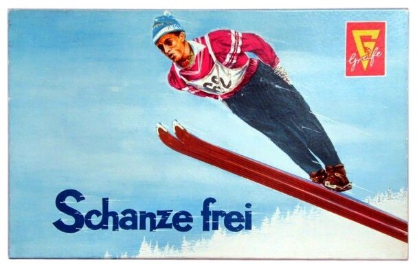 This is a compilation of 4 skiing games. 1. Der Spezialsprunglauf (Ski jumping) Each player has 3 jumps and the 2 best results count to the end result. First the player rolls the 3 white dice to determine the length of the jump. If one die shows a "0" the jumper has fallen. Then the 3 black dice determine the posture grade. The Result of each jump is...
