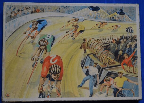 A deceptively simple racing game with the possibility of high levels of meanness and co-operation during each brief race. Players sequentially play one of their cards to move. The opening hand is 4x1, 4x2, 4x3, 3x3, 2x5, 1x7, which is enough to get you only halfway around the circuit. If the space you move to is occupied by other cyclists, you gain a jump...