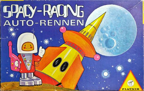 Two racing games in a single box Car-racing: Objective: Be the first ending the car race by passing target space the 3rd time (or more if agreed by the players) - moving by turns - roll the die, move your meeple & and follow instructions for some fields. On each field only 2 cars are allowed to stay. Space-racing: Racing with the Alien "Spacy" through the...