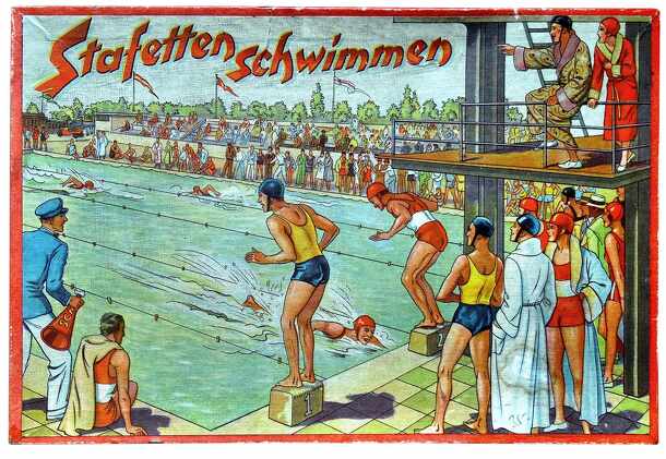 For up to 8 players to complete a circuit of the board, by rolling the dice to move, progressing through four performance levels: Club, County, National, International, then to complete a lap of the stadium and to finish on the podium first, having obtained sufficient: Skill, Publicity, Funding, Success, on the way. Route: The first player throws the die...