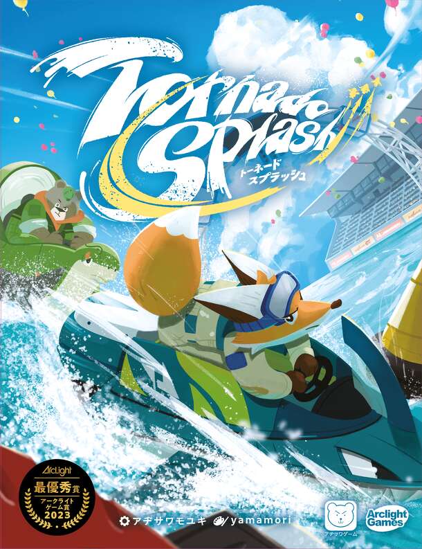 Make a splash with Tornado Splash, the high-speed, high-stakes jet ski racing game! Race your rivals to the finish line by playing route cards that balance speed and control. Will you zoom ahead on the straights or carve tight corners around the curves? Every turn counts. Falling behind? Don't wipe out just yet! Each player has one powerful boost per race...