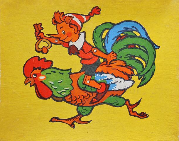 Золотой ключик ("The Golden Key") is a simple draw-and-move race game for children in "senior preschool," based on the classic Russian children's novel of the same name by Alexei Tolstoy (itself an adaptation of the Italian novel "Pinocchio"). It is a variation on a more common roll-and-move game with the same theme, but this is the only version to feature...