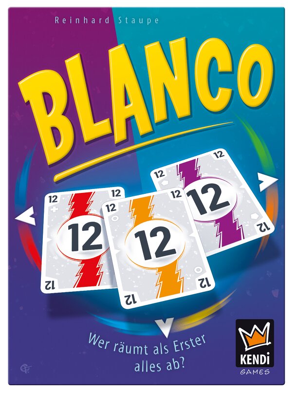Each player in Blanco starts with a face-down 3x3 grid of cards, with each card showing a number (1-12) and a colored vertical stripe. To complete set up, turn one card face up, look at another card, then draw a hand of two cards. On a turn, draw a card from the deck or discard pile, then either (1) discard a card and reveal a face-down card in your grid...