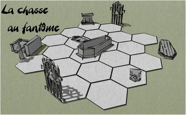 The tomb of the manor of the Eimpfildster is haunted. The hunters must catch the ghost before the end of the 12 chimes of midnight. The ghost mustn't get caught. Content: a board rules a 12-sided die 1 blue hunter and his 4 blue detectors 1 red hunter and his 4 red detectors For the ghost: a marking sheet, a pen and the hiding screen with the coordinates...