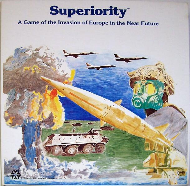 An abstract game representing "modern" warfare between Soviet and American forces. Both players set up their forces on the bottom of two hidden 15x14 grid maps which are identical. The goal is to advance as many units as possible to the top of the map in 8 turns. Each turn consists of players alternating launching missiles at map locations on the opposing...