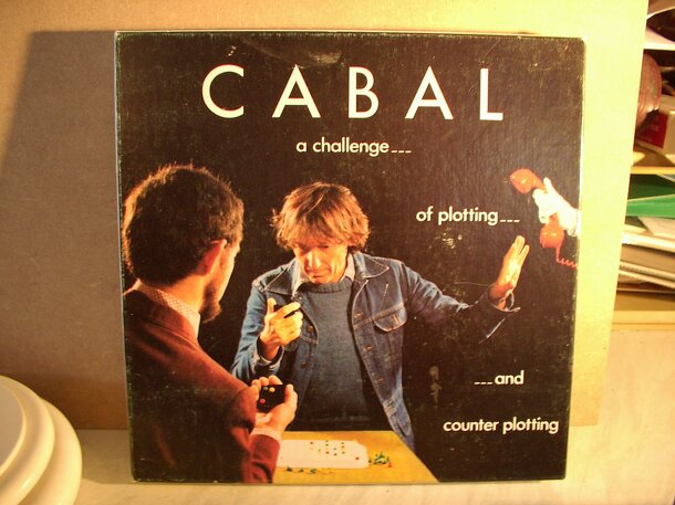 Cabal is a two player asymmetric game. One player is the Escaper and the other is the Trapper. There is a main board which consists of a 9x9 grid of holes, and then each player has a board shaped to fit in the hand that represents the 8 spaces around the position of the Escaper's pawn on the main board. The Escaper simply plots where they want to move. The...