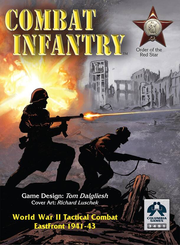 Game description from the publisher: Combat Infantry, previously known as K.I.S.S. and Courage, is a fast-paced World War II tactical level game that employs wooden blocks. The game system features innovative and interactive rules for Fire Combat, Close Combat, Morale, and Leaders. The game delivers a high level of tactical realism, yet is very playable....