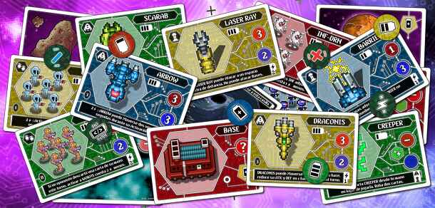 General description: Cyber War is a card strategy game played on a game board divided into squares. Set in the style of the classic spaceship videogames, the players should use their resources wisely, launch coordinated attacks and defend their bases for the win. The objetive of the game is to capture the enemy bases while avoiding the opponent take ours....