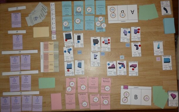 After four tumultuous years, President Barack Obama announced he was running for re-election. His challenger, Mitt Romney, survived an at-times brutal primary season to emerge the victor. Can you run a campaign to lead your candidate to victory? Each player starts the game with a set number of cards: several common cards that represent issues (such as...
