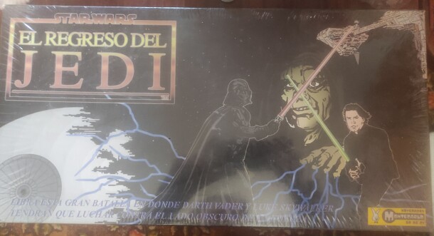 Spanish (mexican) Star Wars game with Return of the Jedi as a background Theme. A Spanish/Star Wars themed game based on Stratego. Playing tokens have one inch plastic bases with cardboard standees of characters and ships from the Star Wars movie in place of the usual pictures. The game has some pieces that operate differently than their Stratego...