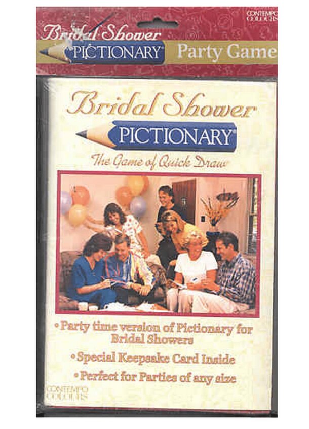 In Bridal Shower Pictionary game each team chooses a Picturist for the first round. A Picturist is the person who will sketch for their team. One Pictionary card is selected out of the bowl. Each Picturist looks at the bridal shower theme word and begin sketching for their team when time is started. Remember not to use letters of numbers in your sketch....