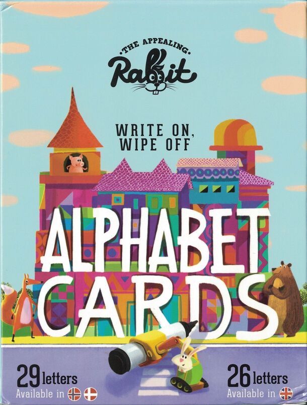 From the back of the box: This alphabet card game originated at a dinner table in Stavanger. From one concerned father to another; they will truly capitivate your child's interest and help make writing less frustrating and more fun for all! Each of our write on, wipe off alphabet cards focus on a letter and have playful images that guide and encourage...