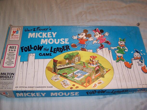 A Mickey Mouse Follow the Leader Game egy nagyon könnyen tanulható társasjáték, 2 - 4 játékos részére, az átlagos játékidő rövid, csak 30 perc. A társas elsősorban gyerekeknek készült. A játékmenet erősen épít a forgass és mozgass mechanizmusra.