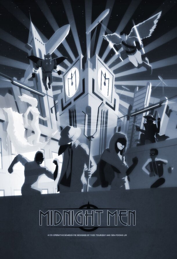Midnight Men est un jeu coopératif de super-héros hautement thématique aucours duquel les joueurs utilisent leurs "decks" personnels de cartes Pouvoirs pour neutraliser les menaces et complots initiés partout dans la ville par le Vilain. Les joueurs doivent oeuvrer ensemble pour vaincre le Vilain avant que son complot ne réussisse, ou avant que le niveau de terreur devienne extrême.