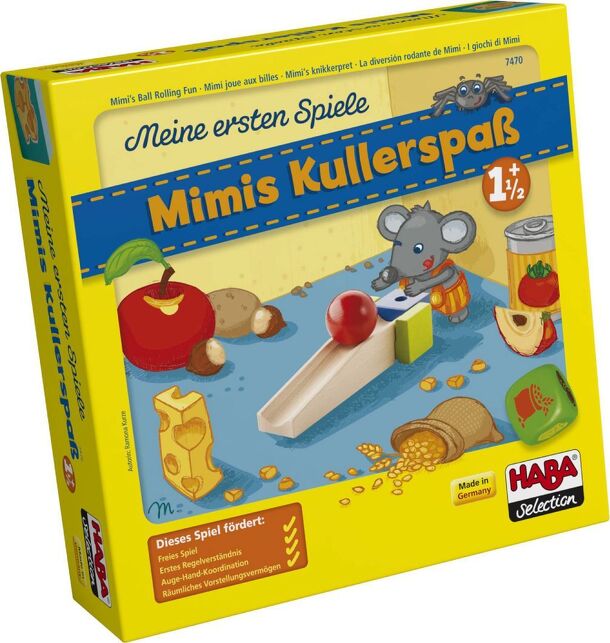 Wow, there are so many things going on here! Today Mimi Mouse is playing with cheese, corn and nuts in the larder. She always has so many fabulous ideas. Be it a memory or die game, the game collection Mimis Kullerspaß — with construction elements of My First Ball Track Sets — offers a lot of diversity. Hence the very smallest can already have ball-rolling fun and become acquainted with first game rules.