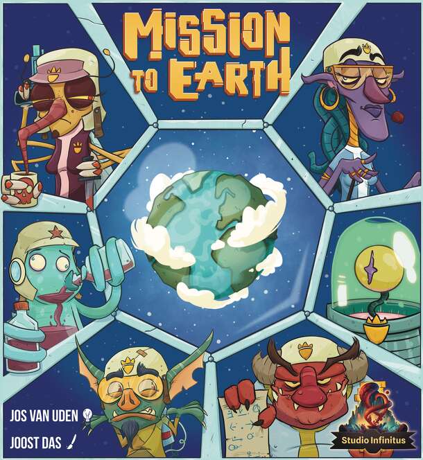 In Mission to Earth players play as one of five alien corporations trying to get to Earth first. Players have to buy three different upgrades for their spaceship in order to make it to Earth. Plus they need two pilots to fly through the tricky parts of space.