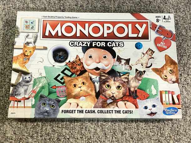 GAME ABOUT CATS: The Monopoly Crazy for Cats board game is for cat lovers and those who know them! In this Monopoly game with a twist, players collect cats, buy cat properties...