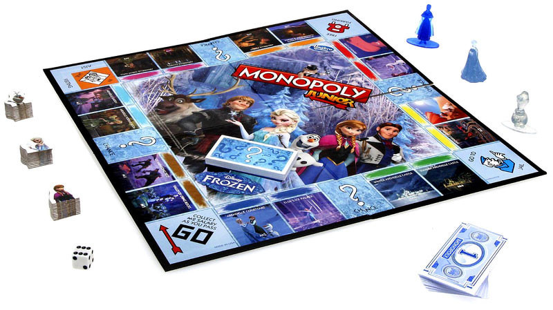 A Monopoly Junior Jégvarázs kiadásában a gyermekek Anna, Elsa és Olaf karaktereivel mókás módon kereshetnek pénzt és kalandozásaik során Arendelle csodálatos helyszíneit vásárolhatják meg. A Jégvarázs kiadás hasonlít a klasszikus Monopoly játékhoz, azonban gyorsabb és egyszerűbb a fiatalabb játékosok kedvéért.