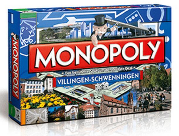 Monopoly set in Villingen-Schwenningen, Germany. All the traditional elements of rolling, moving, purchasing, earning, and spending.
