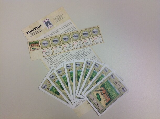 The monument Phaistos was lost during the development of the game — but now it's part of the game again! With Monuments: Wonders of Antiquity – Phaistos: The Lost Monument, nine additional cards are available for building Phaistos by each player (not only two of them). To get a Phaistos card, you must pay another card with a matching symbol. Each card is...