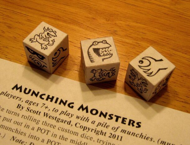 A Munching Monsters egy nagyon könnyen tanulható társasjáték, 2 - játékos részére, az átlagos játékidő rövid, csak 10 perc. A társas elsősorban gyerekeknek készült, akár már 6 éves kortól is játszható. A játékmenet erősen épít a kockadobás mechanizmusra.