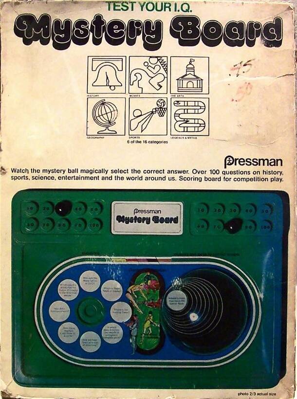 "Watch the mystery ball magically select the correct answer. Over 100 questions on history, sports, science, entertainment and the world around us. Scoring board for competition play."