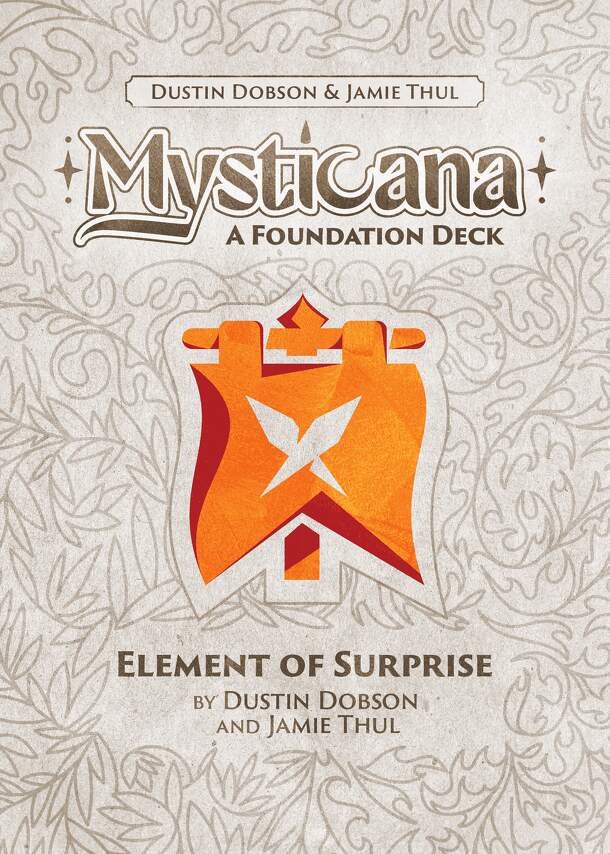 A Mysticana: Element of Surprise egy nagyon könnyen tanulható kiegészítő a Mysticana: A Foundation Deck társasjátékhoz, 1 - 2 játékos részére, az átlagos játékidő rövid, csak 20 perc. A társast, a könnyebb tanulhatósága miatt, akár már 8 éves kortól ajánljuk kipróbálni. A játékmenet erősen épít a solitaire mechanizmusra.