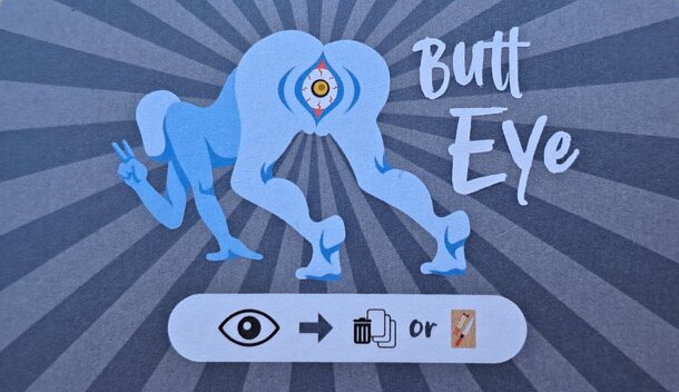 This 6-card promo was given out at Essen Spiel 2023. Set-up: Each player takes a 'Butt Eye' card. Gameplay: On your turn during the 'Eat Sushi' phase, discard this card to...