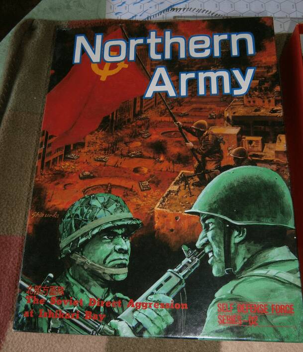 SGB-25 Northern Army (1987) (JPY 4800) Subtitled “Self Defense Force Series-02” and “The Soviet Direct Aggression at Ishikari Bay”. One and a half maps, 504 counters, four PACs...