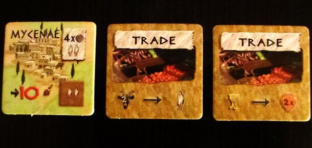The new special tiles for Peloponnes: One is a new civilization shuffled along with the other civilizations. The other 2 Trade tiles are used together with the Goat Expansion...
